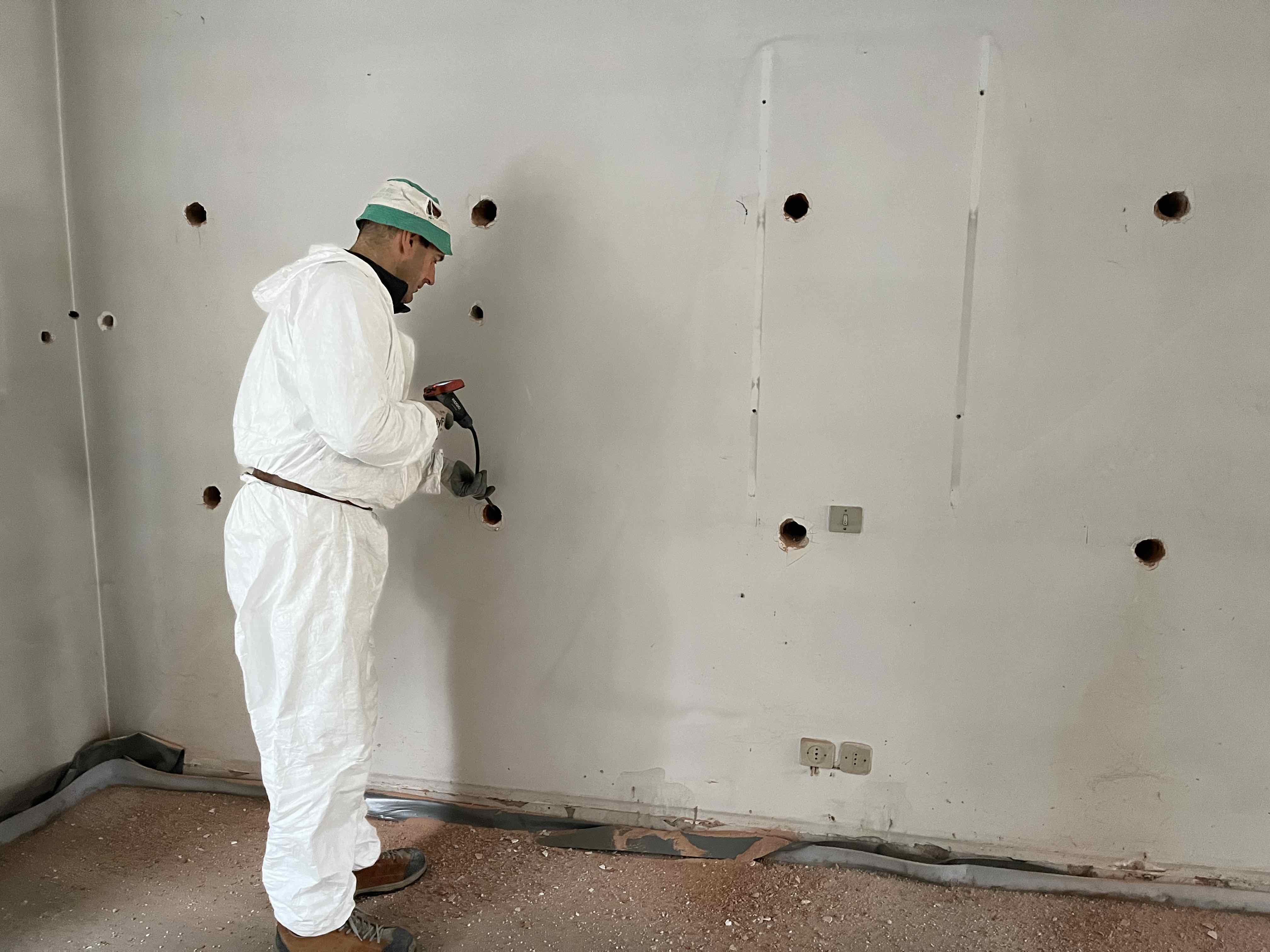 Negli edifici realizzati tra gli anni '50 e '80, le intercapedini delle pareti perimetrali erano una caratteristica comune per migliorare la ventilazione. Con l'insufflaggio queste intercapedini, che separano la muratura esterna da quella interna, vengono riempite attraverso fori eseguiti sulle murature dall'interno o dall'esterno.